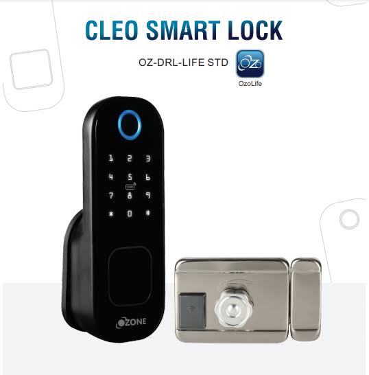 The Ozone Cleo Smart Door Lock, also known as OZ-DRL-LIFE-STD, offers a 5-way access method, including fingerprint, password, RFID card, mobile app (OzoLife), and an emergency key. It's designed for both wooden and metal doors with thicknesses ranging from 20-65 mm. The lock has a weight of 2.5 kg and requires 4 AA batteries. The storage capacity is 300, accommodating a combination of RFID cards, fingerprints, and passwords. Here's a more detailed breakdown of the Ozone Cleo specifications: Access Methods: Mobile App (Ozolife): Control and manage the lock via a smartphone app. Fingerprint: Unlock using a registered fingerprint. Password: Unlock using a pre-set password. RFID Card: Unlock using a registered RFID card. Emergency Key: Mechanical key for backup access. Physical Specifications: Lock Body Size: 5572 mm or 7085 mm. Lock Weight: 2.5 kg. Door Thickness Compatibility: 35-65 mm. Suitable Door Type: Wooden and metal doors. Batteries: 4 AA batteries. Lock Dimensions: 156 x 58 x 33 mm. Finish: Black/SC or Black/AB. Other Features: Storage Capacity: 300 (RFID cards + fingerprints + passwords). Audit Trail: Records access history, including who unlocked the door and when. Passage Mode: Allows the door to be unlocked without the need for a key. Anti-Theft Password: Provides a temporary password that can be set for a specific period. Smart Freeze: A feature that freezes the lock if it detects suspicious activity. Privacy Locking: Allows users to lock the door from the inside without needing a key. Low Power Consumption: Designed to minimize battery usage. USB for Battery Backup: Offers an option to power the lock via USB in case of low battery.