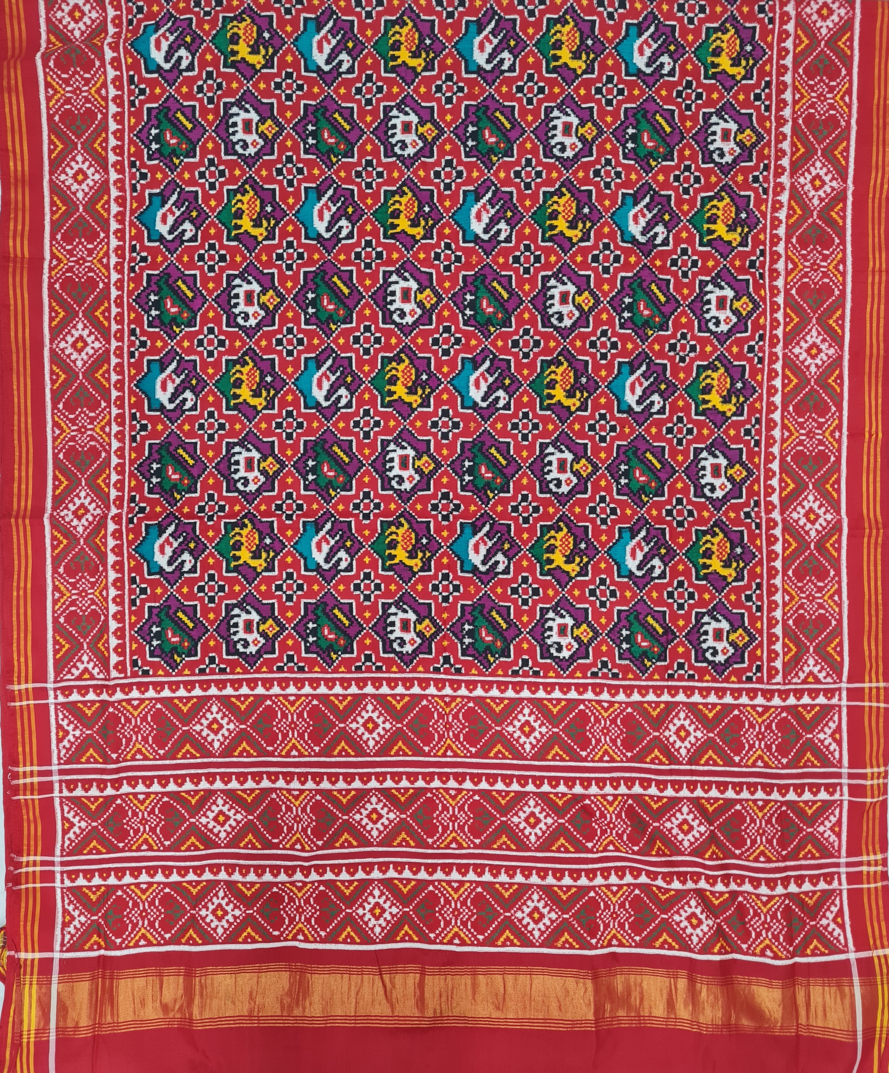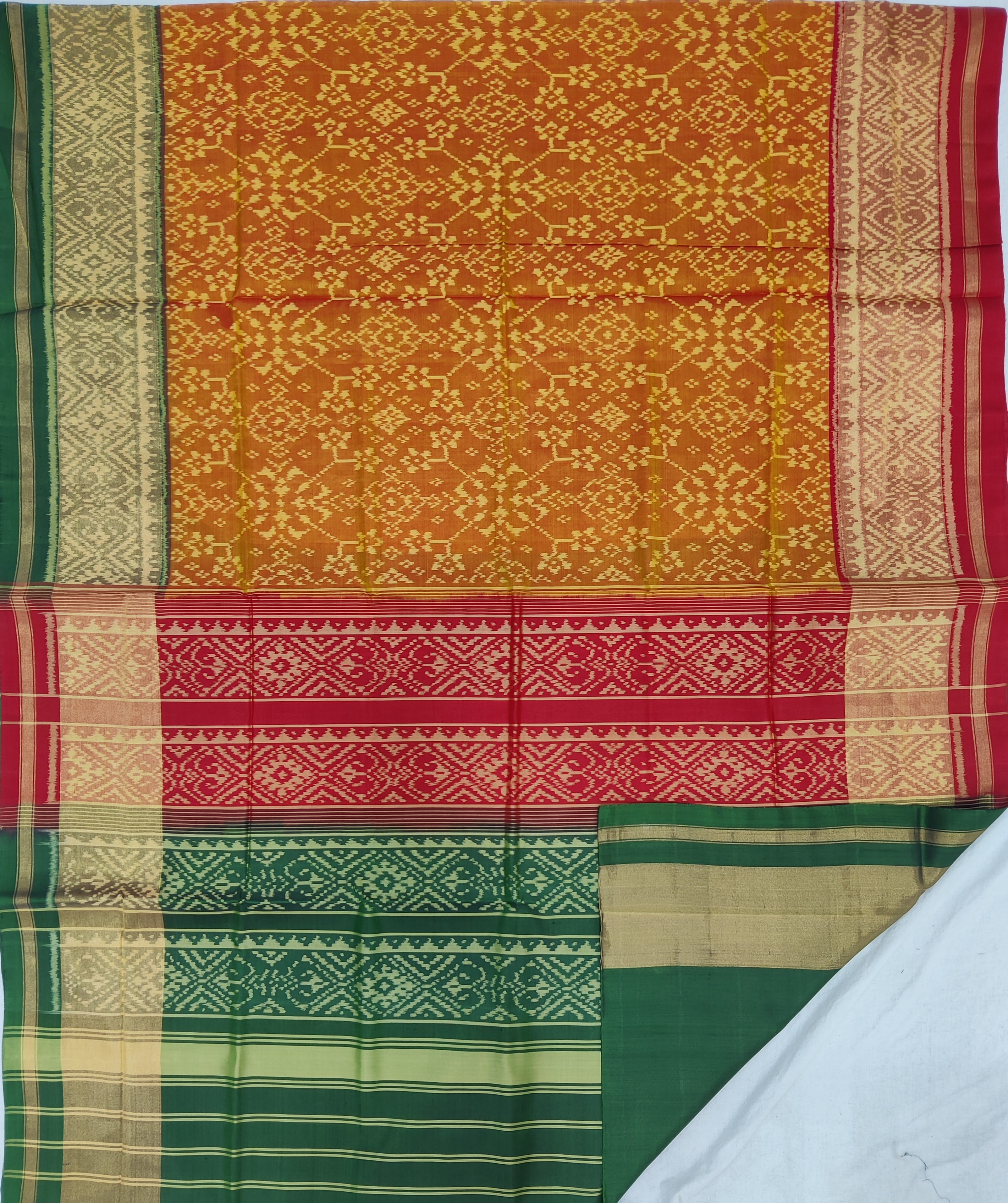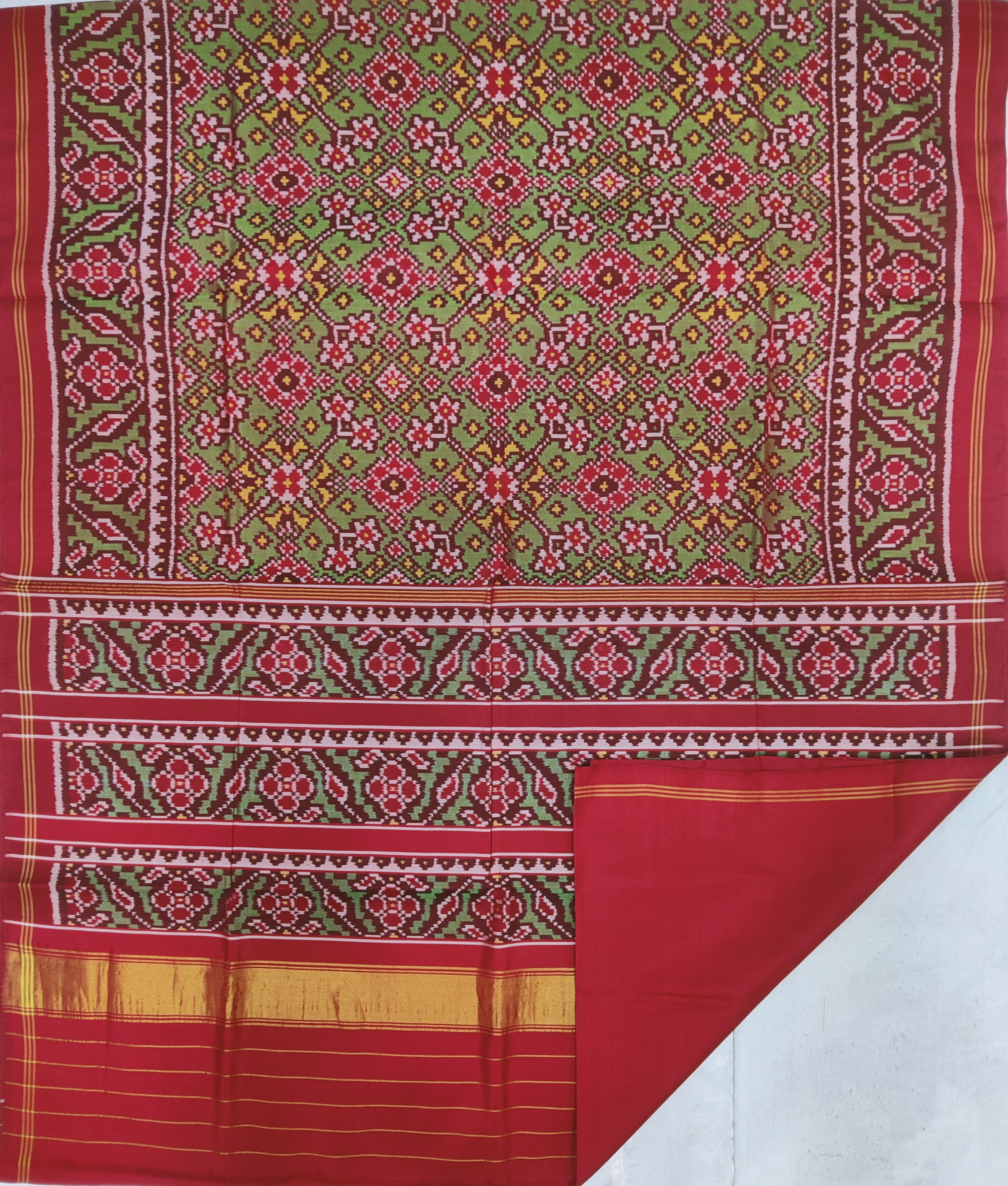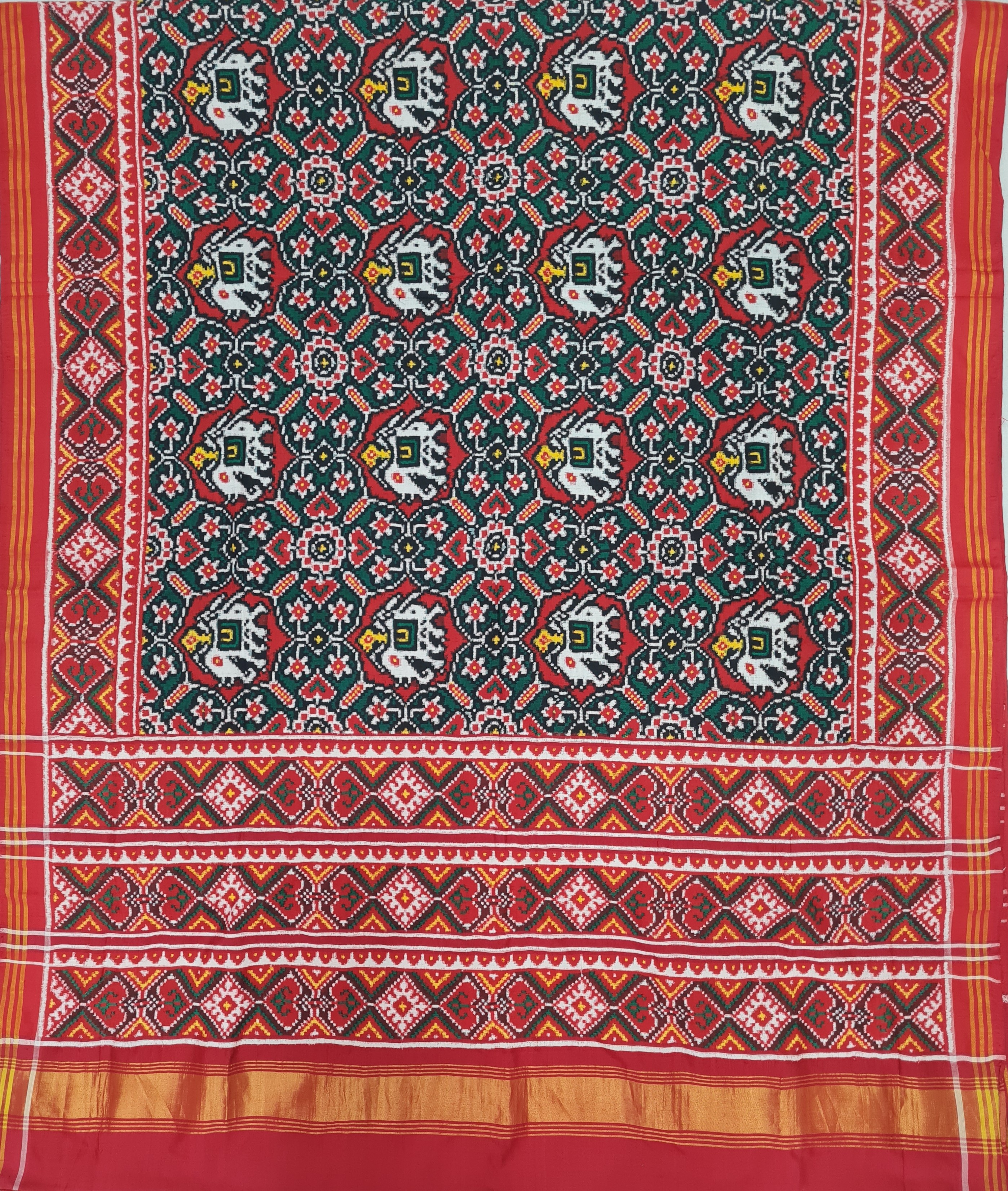 Design: Manekchok with Figure, Color: Green-Red Material: 100% pure Mulberry silk, Weaving: Double Ikkat. Loom: Handloom Care: Dry clean. *Note: Color variation may occure in real and this product has been woven by hand and may slight irregularities taht are natural outcome of human involvement in the process. T&C apply.