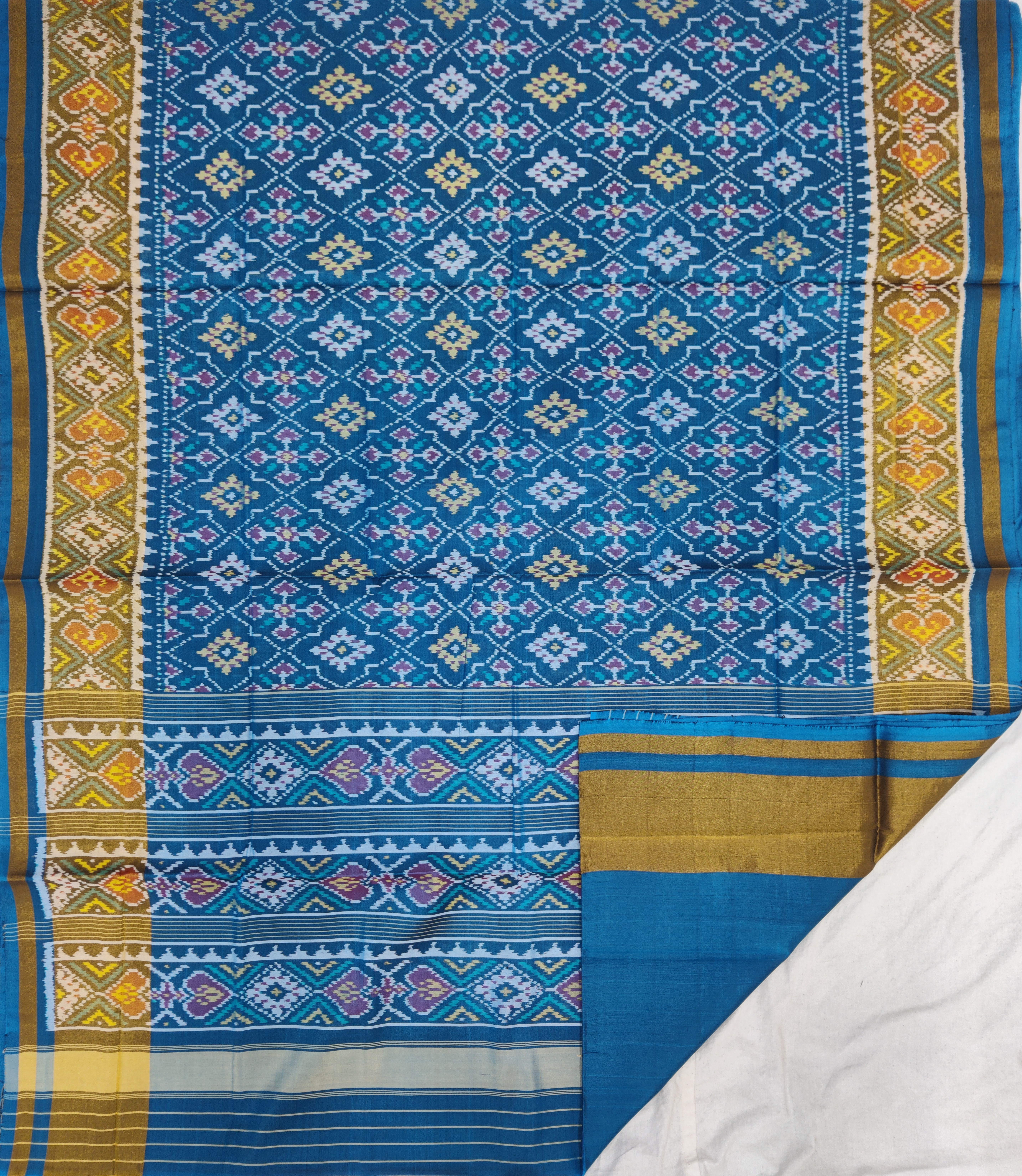 Design: Paanchanda, Color: Teal Material: 100% pure Mulberry silk, Weaving: Single Ikkat. Loom: Handloom Care: Dry clean. *Note: Color variation may occure in real and this product has been woven by hand and may slight irregularities taht are natural outcome of human involvement in the process. T&C apply.