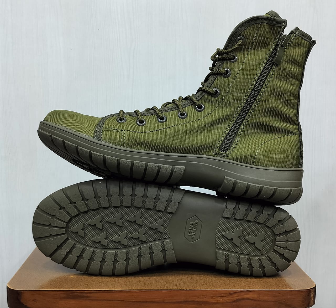 Green canvas tactical boots