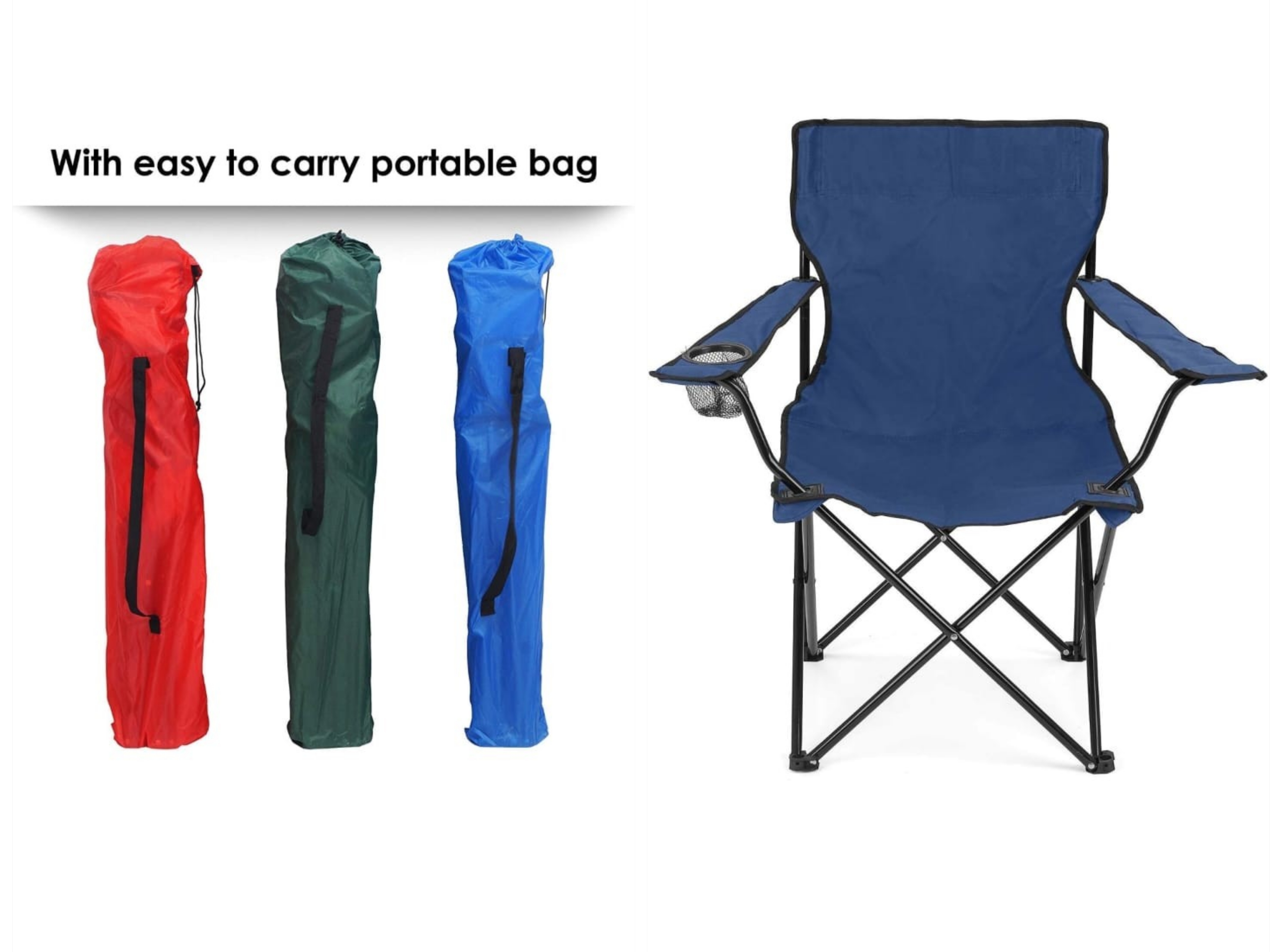 Portable Folding Chair with Arm's rest Cup Holder with carrying Bag for Camping, Traveling, Lawn, Patio, Fishing, Beach and Picnic. Outdoor Foldable Chair Alloy Steel Multicolor.