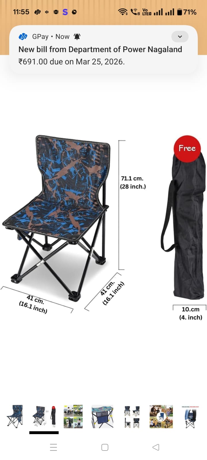Outdoor Folding Chair with Back support | Lightweight Camping Chair with Carry Bag for outdoor use (multicolor)